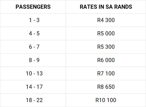Price is strictly From: OR Tambo, Lanseria, Pretoria Sandton or Johannesburg.
